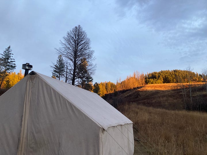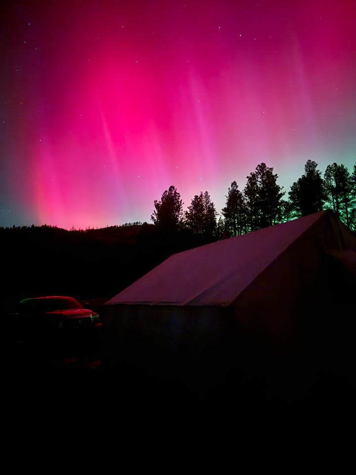 Warm breezy days, clear cold nights, woodsmoke on the air and a popping fire in the stove. One night the entire wide Montana sky became a kaleidoscope of Northern Lights, reds and greens swirling and shifting for hours, while we sat there like astral pilgrims with our jaws on the ground…