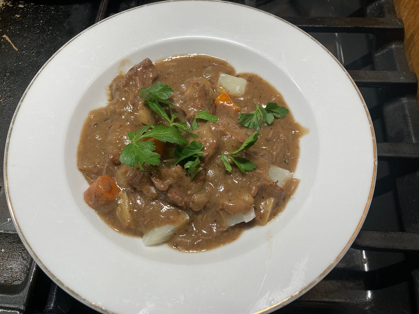 Nearly forty years on, I’m still at it, and still with the same guidebook. I tagged a Montana whitetail the day after Thanksgiving, and a few days back, my brilliant and prescient wife went straight to one of my go-to dishes, a stew I myself have probably cooked a hundred times over the years.
